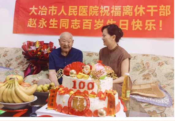 值此百岁寿辰,大冶市人民医院党委及全体职工向赵永生同志致以最热烈的祝贺与最崇高的敬意!我们衷心祝愿赵老书记福寿安康,笑口常开!他的精神将如灯塔,指引我们不忘初心、牢记使命,为守护人民健康福祉而不懈奋斗!
