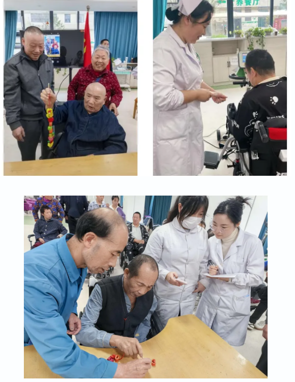 为了让患者在轻松氛围中锻炼功能、拉近与医护人员的距离,活动设计了“串珠大比拼”与“重阳手工坊”两大互动环节,医生、护士、治疗师、患者、陪护共同参与,让治疗大厅变成了充满欢笑的“康复乐园”。