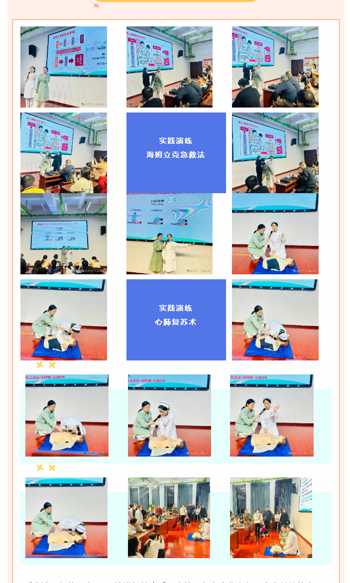 现场还邀请教职工与家长上台实操,教学团队逐一纠正动作,确保每一位参与者都能掌握“听得懂、学得会、用得上”的急救技能。