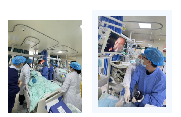 消化内科团队接到会诊通知后火速抵达急诊现场。经快速研判,考虑患者为活动性消化道大出血,病情极其危重,死亡率高,且无法耐受搬动检查。团队当机立断:将患者直接收入ICU,并在床旁实施急诊内镜下止血——这是当时能够最快、最有效控制出血、挽救生命的方案。