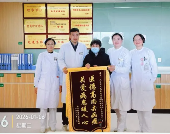 术后一周,患者陈奶奶的女儿送来了一面锦旗。“医德高尚去病痛,关爱病患暖人心”——简单的几个字,背后是一个家庭重获希望的感激。