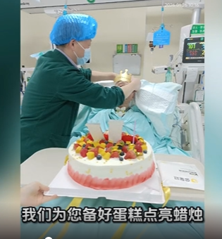 ICU病房内,各种医疗设备发出规律而低沉的运行声,一位94岁高龄的爷爷正静静地躺在病床上。他无法言语,但医护团队从未忽略这个特殊的日子——他的生日。