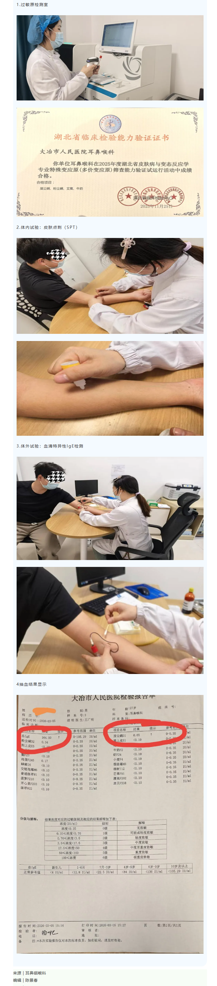 大冶市人民医院耳鼻咽喉科过敏反应室通过专业化、精准化的诊疗模式,为过敏患者提供高效解决方案。今后,随着多学科协作深化和技术迭代,科室将进一步成为区域过敏性疾病防治的核心力量。患者可通过过敏原检测、个性化治疗及健康管理,实现从“被动治疗”到“主动防控”的转变。
